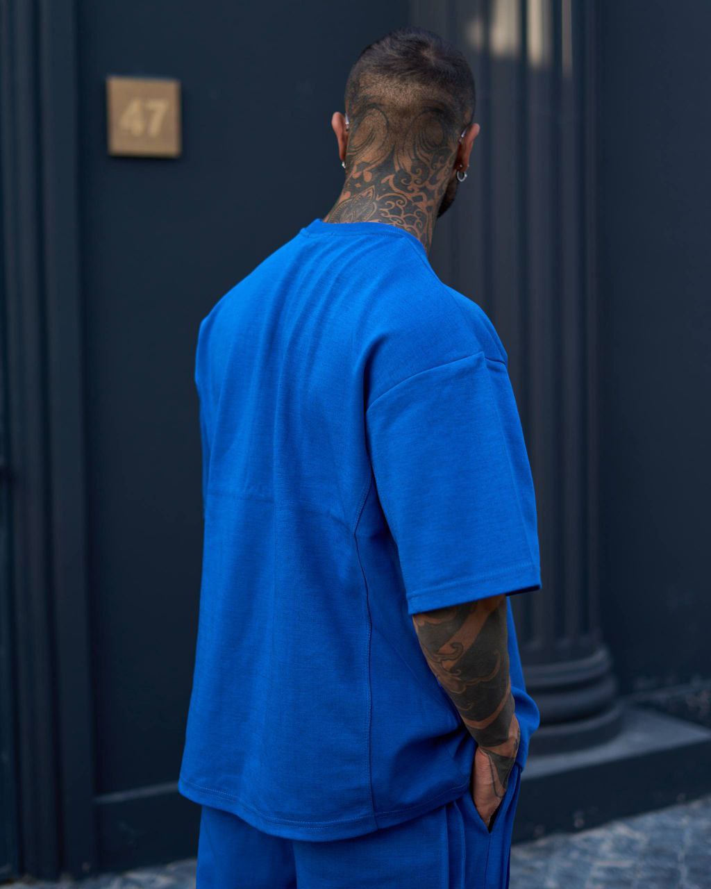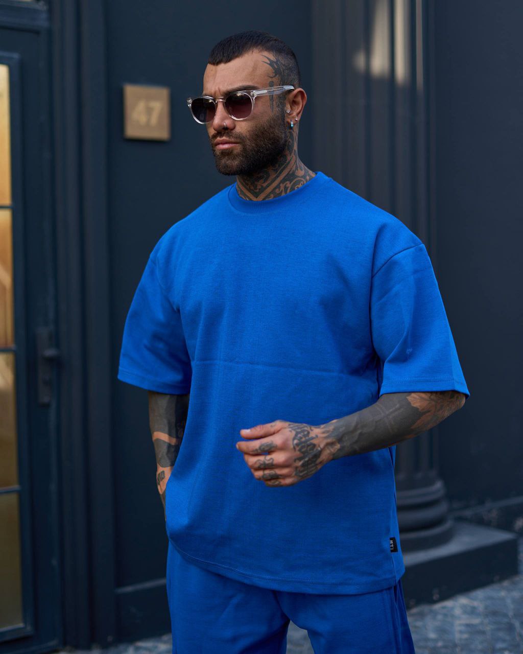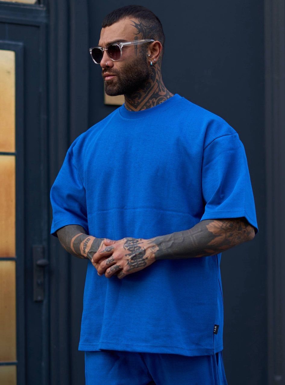 تیشرت اورسایز مینیمال آبی رویال | «Sky Mood» کد 2214/6