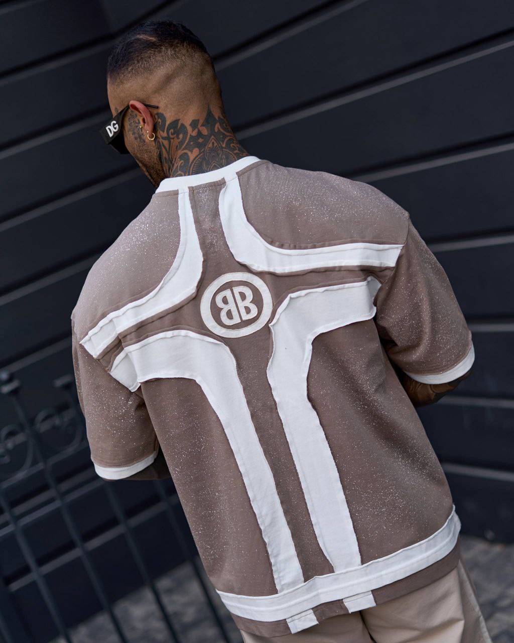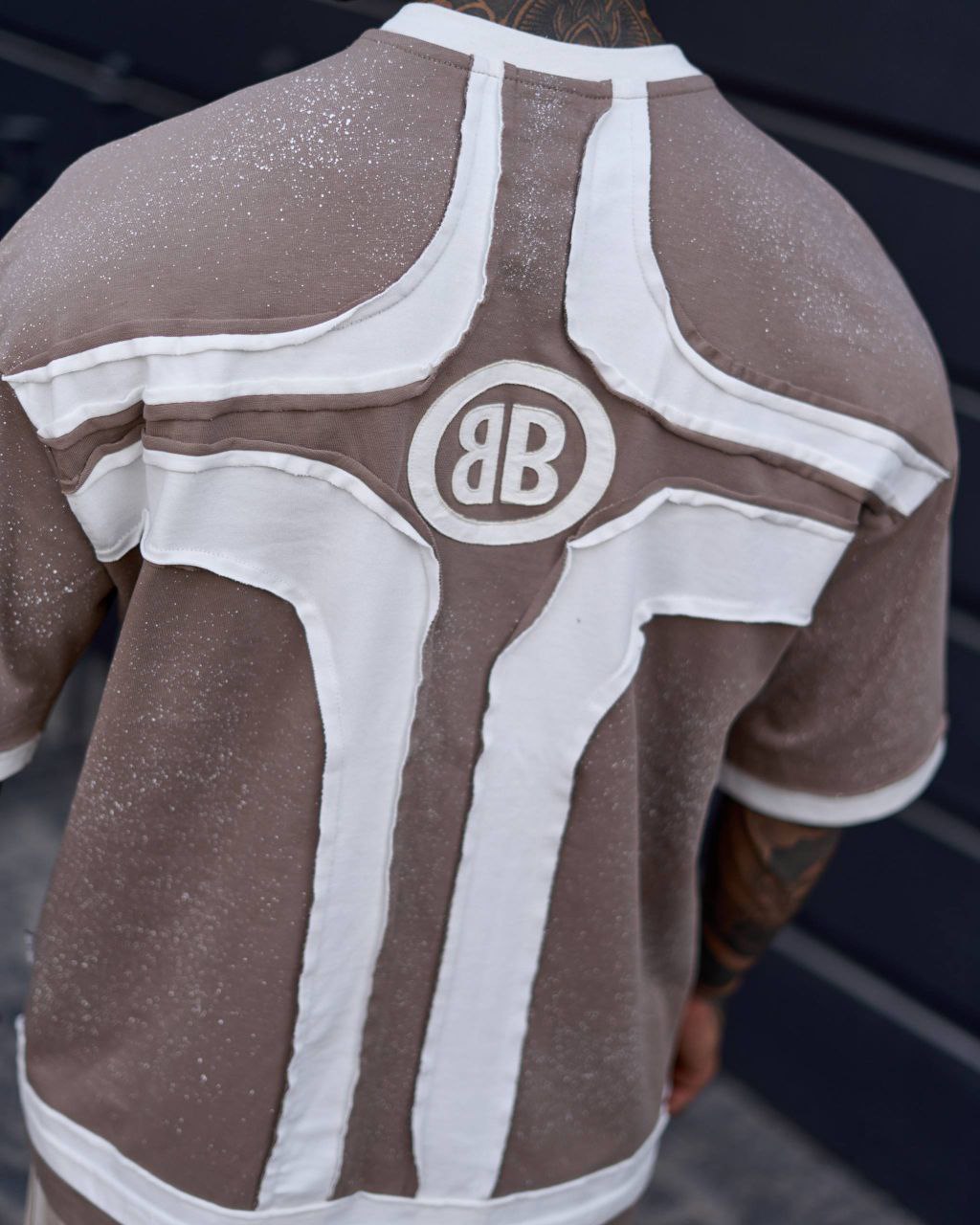 رنگ قهوهای گرم در کنار ترکیب سفید لایهای در یقه و پایین کار، جلوهای خاص و مدرن ایجاد کرده است. تایپوگرافی برجسته در قسمت جلو باعث میشود این تیشرت قهوهای استریتاستایل مردانه کاملاً چشمگیر و متمایز دیده شود.