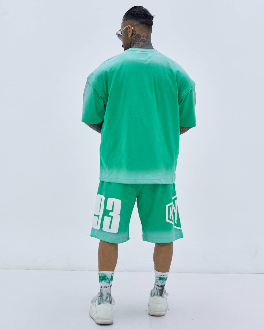 ست تیشرت و شلوارک KAYMET سبز گرادیانی، ترکیبی از طراحی جسورانه و راحتی بینظیر است. رنگ سبز انرژیبخش در کنار چاپ سفید بولد، جلوهای مدرن و کاملاً استریتاستایل ایجاد کرده که برای استایلهای روزمره، دورهمی و حتی عکاسیهای خاص بسیار مناسب است.