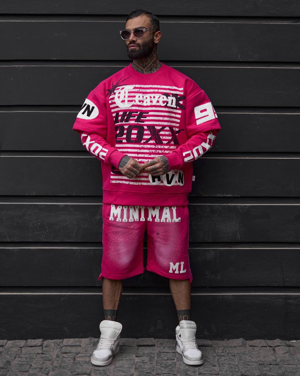 ست سرخابی خیابونی HEAVEN 99 (تیشرت و شلوارک اورسایز) کد 2309