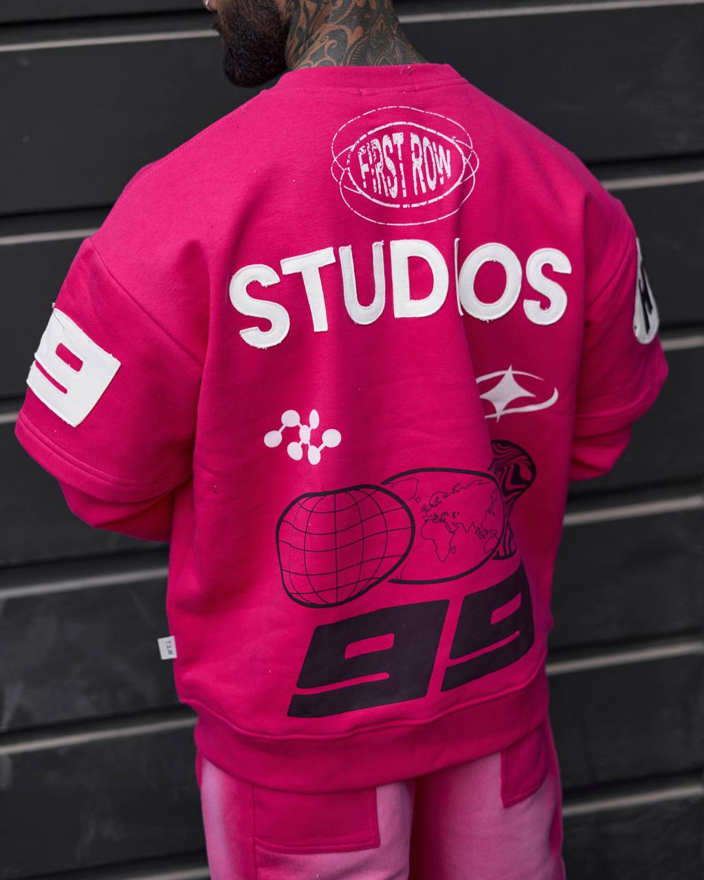 آستینها پر از پَچهای گرافیکی و عدد برجسته «۹۹» هستند که استایل تو را کاملاً متفاوت میکنند. پشت تیشرت هم با نوشتهی STUDIOS و المانهای گرافیکی مثل کرهی زمین و فرمهای مینیمال، یک قاب کامل بصری میسازد؛ یعنی از هر زاویهای که دیده شوی، لباس حرف برای گفتن دارد.