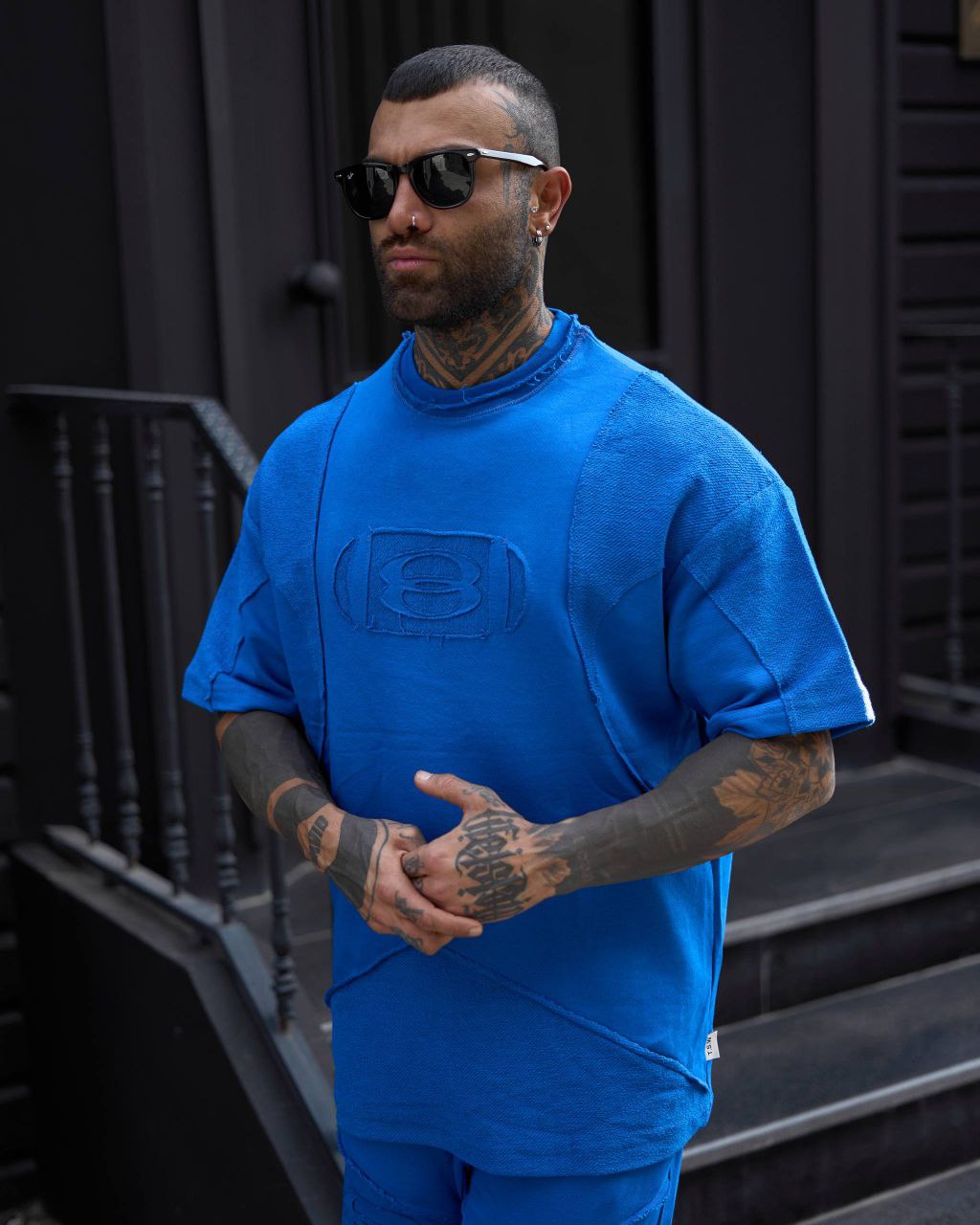رنگ آبی سلطنتی این ست، کاملاً چشمگیر و متمایز است و جلوهای لوکس و مدرن ایجاد میکند. لوگوی برجسته روی سینه و نوشته بزرگ پشت تیشرت، حس برندینگ قوی و استایل لاکچری میدهد.