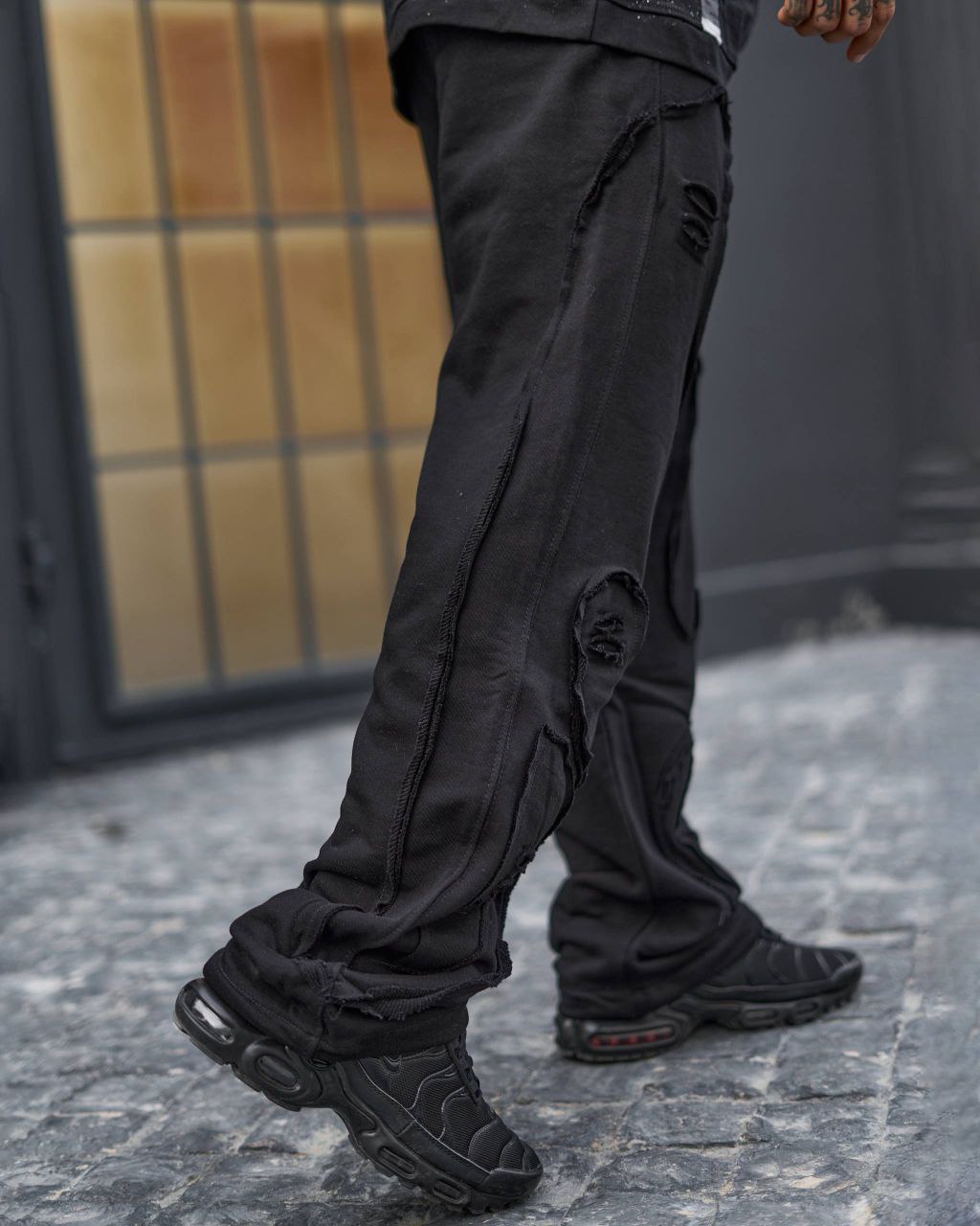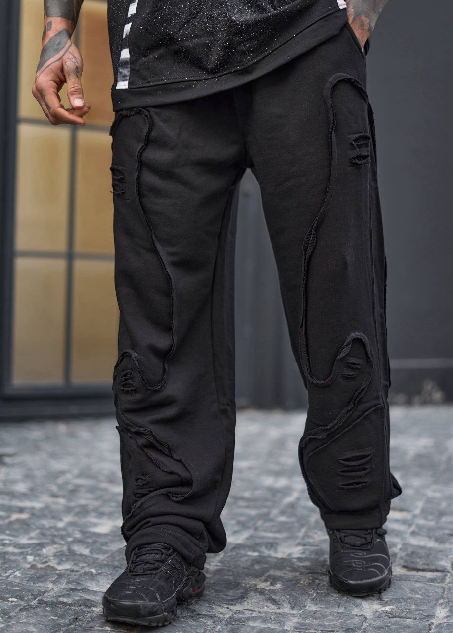 این شلوار اسلش مشکی با طراحی خاص و جزئیات دیسترس (پارگیهای کنترلشده) یک انتخاب متفاوت برای استایلهای استریت و اسپرت محسوب میشود. برش آزاد و راحت آن در کنار دوختهای نمایان و لایهدوزی روی پا، ظاهر مدرن و خاصی ایجاد کرده که بهراحتی با تیشرت، هودی یا سویشرت ست میشود.